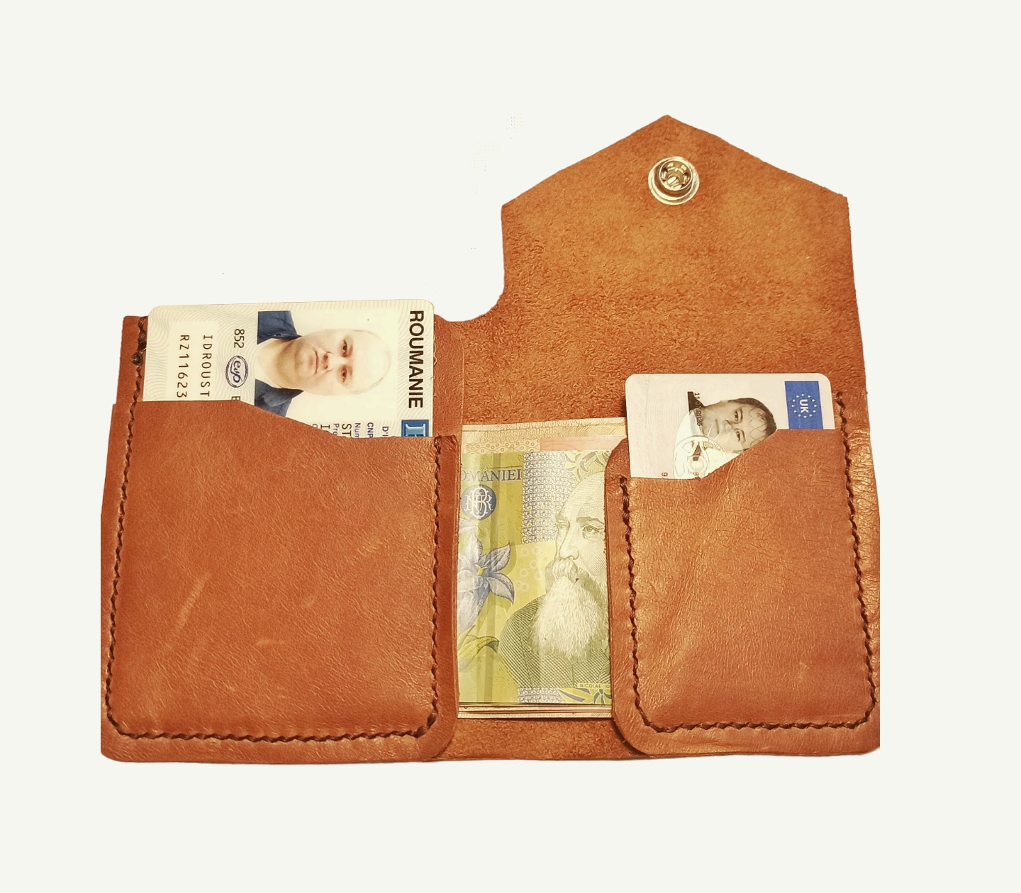 Portofelul nostru de tip bifold este o mărturie a atenției noastre la detalii. Cusăturile manuale, realizate cu grijă, adaugă un plus de finețe, iar pielea moale și maro conferă o notă de eleganță fiecărui moment.